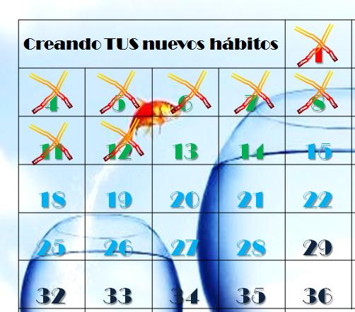 Gaby T. dijo: «De lo más valioso que he leído últimamente. Trataré de llevarlo a cabo y en 41+5 días (por aquello que es martes y debo poner algunas cosas en orden) espero poder tener este nuevo hábito». En realidad una gran ventaja es que no tiene que ser lunes, o primero de enero, o un día en particular para empezar. Por eso no tiene días de la semana arriba, o incluso no se presenta en bloques de siete días. Se separaron los tres primeros, que son los más difíciles, y se cambia de color en cada 14 días a partir de allí, pero la fila no es semanal y ni siquiera es una cuadrícula exacta. Es por eso.