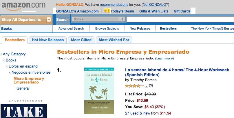 Tenemos un update a la nota: a las 10:00 am del viernes 25 de marzo, se encuentra en el PRIMER lugar de su categoría, como pueden ver aqui: http://amzn.to/hO379F ¡¡Gracias a todos!!